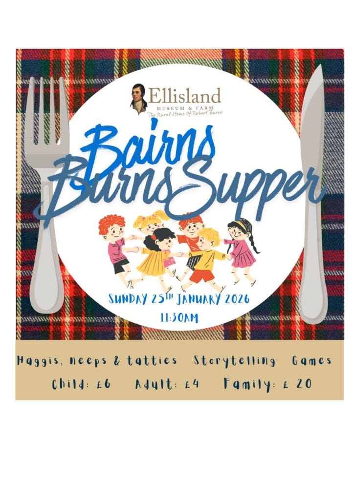 Bring the bairns awa’ to Ellisland Museum & Farm to enjoy a Burns supper full o’ storytelling and games fit for the wee ones.