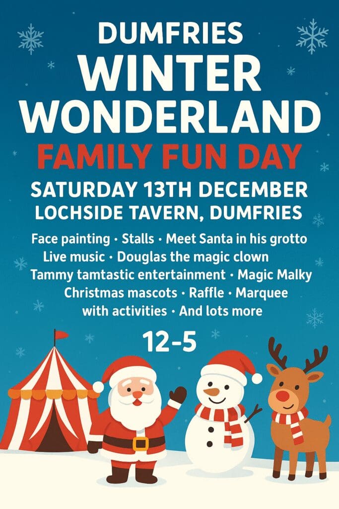 Dumfries winter wonderland family funday returns on Saturday 13th December from 12-5pm with lots to do including