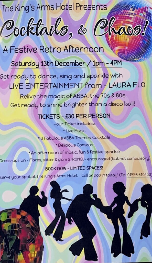 A festive retro afternoon! Relieve the magic of ABBA, 70’s & 80’s music with live entertainment from Laura Flow! Tickets are £30pp and include live music, 3 ABBA themed cocktails, delicious combos and an afternoon of fun. Flares glitter and glam are strongly encouraged!