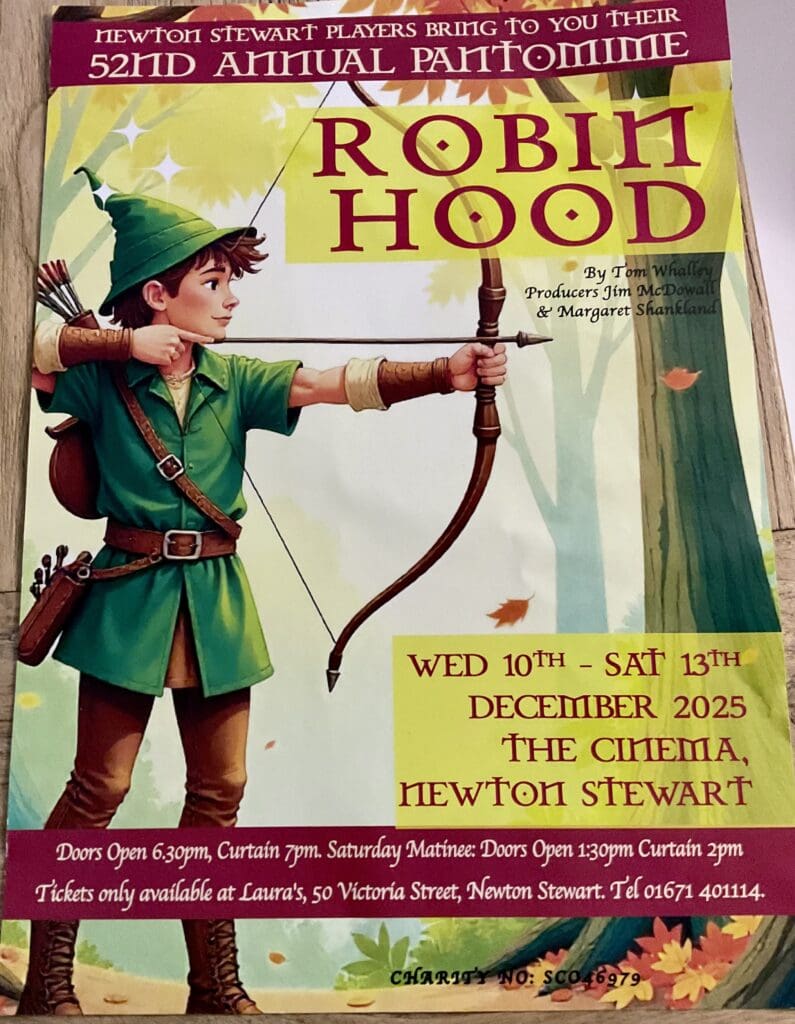 The Newton Stewart Players present their annual pantomime, Robin Hood by Tom Whalley. (Wed 10th – Sat 13th December)